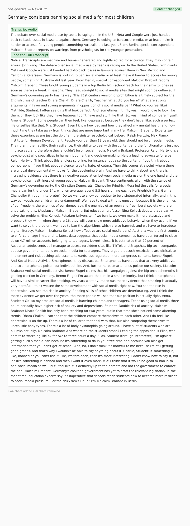 The debate over social media use by teens is raging on. In the U.S., Meta and Google were just handed back-to-back losses in lawsuits against them. Germany is looking to ban social media, or at least make it harder to access, for young people, something Australia did last year. From Berlin, special correspondent Malcolm Brabant reports on warnings from psychologists for the younger generation.