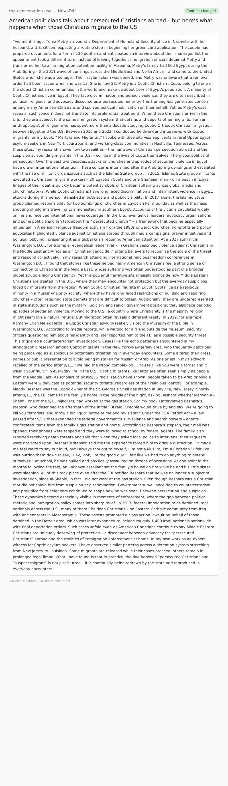 Yet, as Metry’s case reveals, such concern does not translate into preferential treatment: When these Christians arrive in the U.S., they are subject to the same immigration system that detains and deports other migrants.