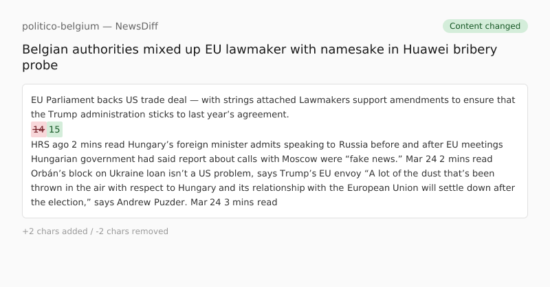 Belgian authorities mixed up EU lawmaker with namesake in Huawei bribery probe