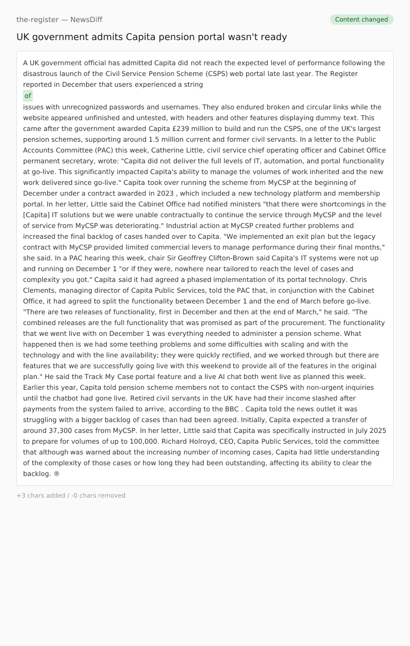 This came after the government awarded Capita £239 million to build and run the CSPS, one of the UK's largest pension schemes, supporting around 1.5 million current and former civil servants.