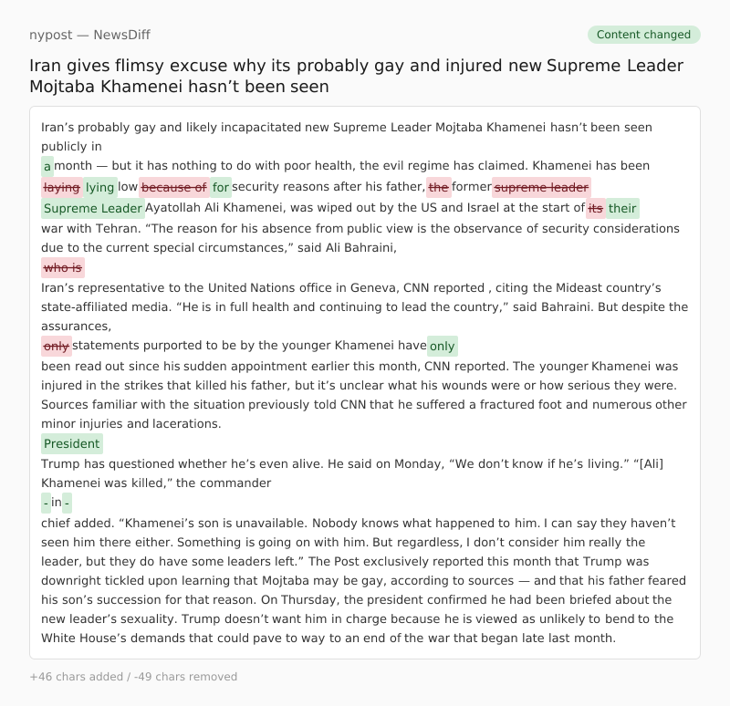 The Post exclusively reported this month that Trump was downright tickled upon learning that Mojtaba may be gay, according to sources — and that his father feared his son’s succession for that reason.