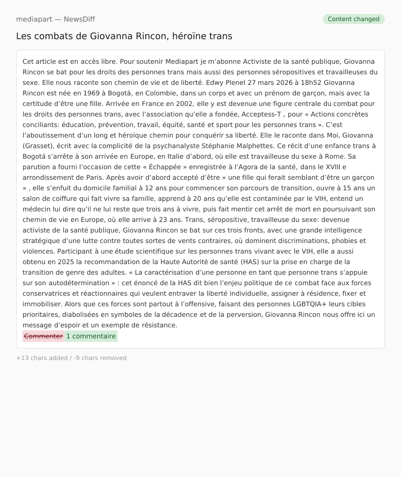 Giovanna Rincon est née en 1969 à Bogotá, en Colombie, dans un corps et avec un prénom de garçon, mais avec la certitude d’être une fille. Arrivée en France en 2002, elle y est devenue une figure centrale du combat pour les droits des personnes trans, avec l’association qu’elle a fondée, Acceptess-T , pour « Actions concrètes conciliants: éducation, prévention, travail, équité, santé et sport pour les personnes trans ».
