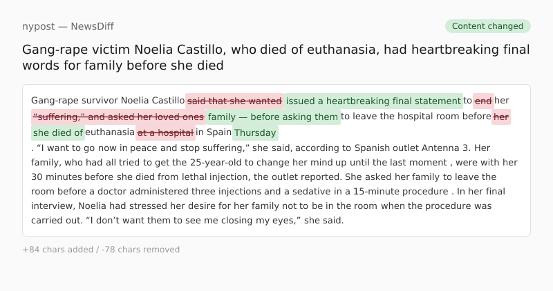In her final interview, Noelia had stressed her desire for her family not to be in the room when the procedure was carried out.