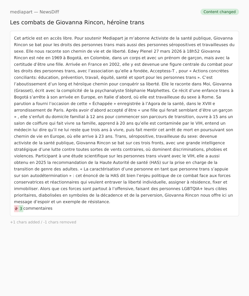 Giovanna Rincon est née en 1969 à Bogotá, en Colombie, dans un corps et avec un prénom de garçon, mais avec la certitude d’être une fille. Arrivée en France en 2002, elle y est devenue une figure centrale du combat pour les droits des personnes trans, avec l’association qu’elle a fondée, Acceptess-T , pour « Actions concrètes conciliants: éducation, prévention, travail, équité, santé et sport pour les personnes trans ».