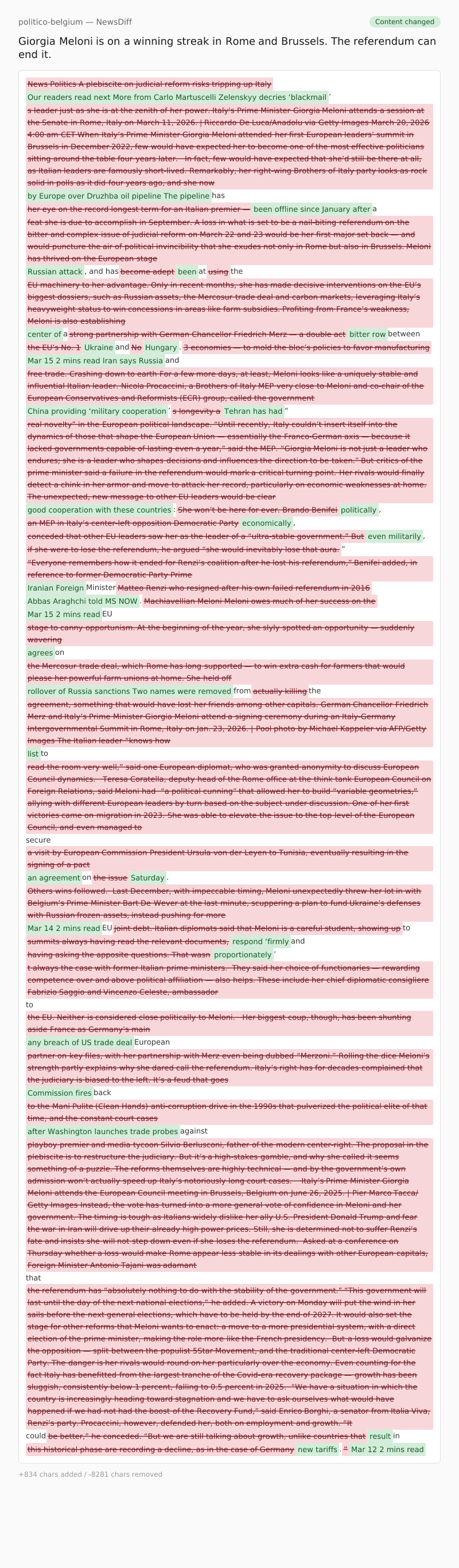 A loss in what is set to be a nail-biting referendum on the bitter and complex issue of judicial reform on March 22 and 23 would be her first major set back — and would puncture the air of political invincibility that she exudes not only in Rome but also in Brussels.