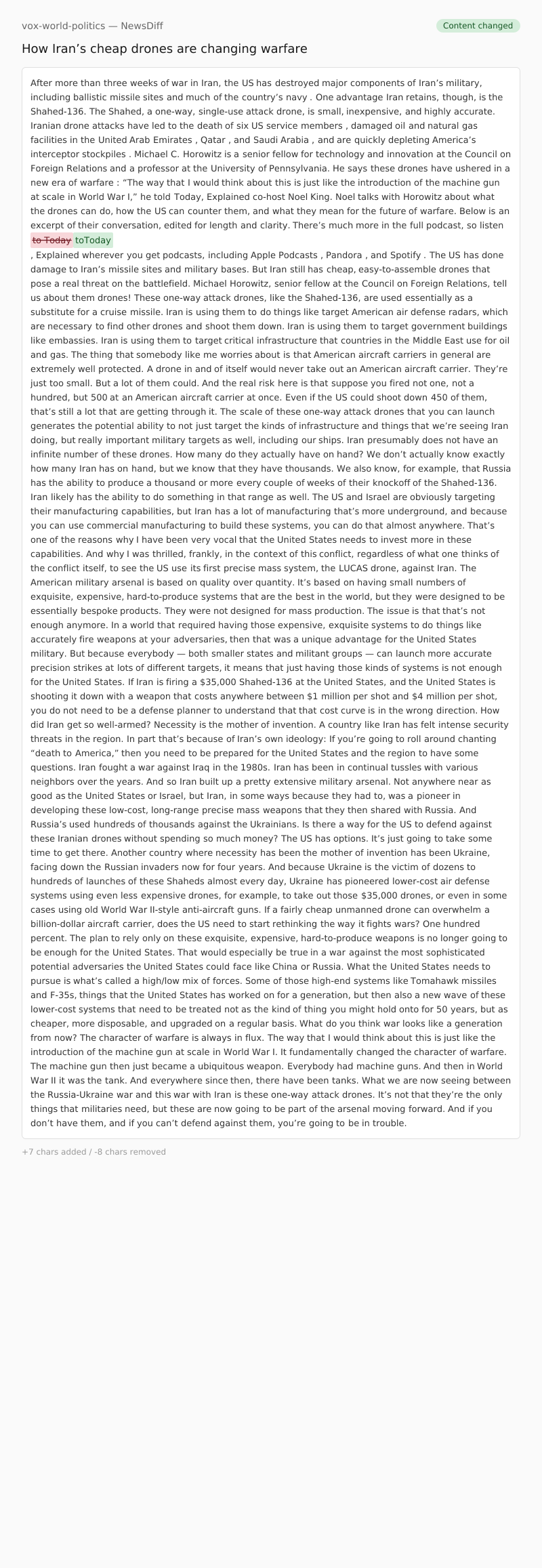 That’s one of the reasons why I have been very vocal that the United States needs to invest more in these capabilities. And why I was thrilled, frankly, in the context of this conflict, regardless of what one thinks of the conflict itself, to see the US use its first precise mass system, the LUCAS drone, against Iran.