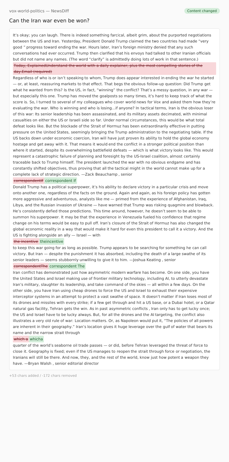 That’s a messy question, in any war — but especially this one. Trump has moved the goalposts so many times, it’s hard to keep track of what the score is. So, I turned to several of my colleagues who cover world news for Vox and asked them how they’re evaluating the war. Who is winning and who is losing...if anyone?