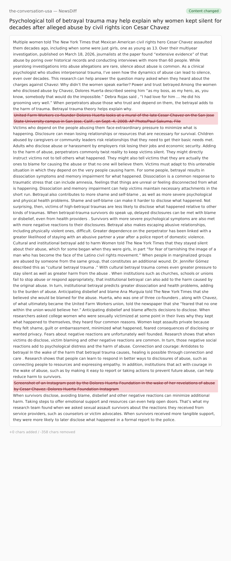 Psychological toll of betrayal trauma may help explain why women kept silent for decades after alleged abuse by civil rights icon Cesar Chavez