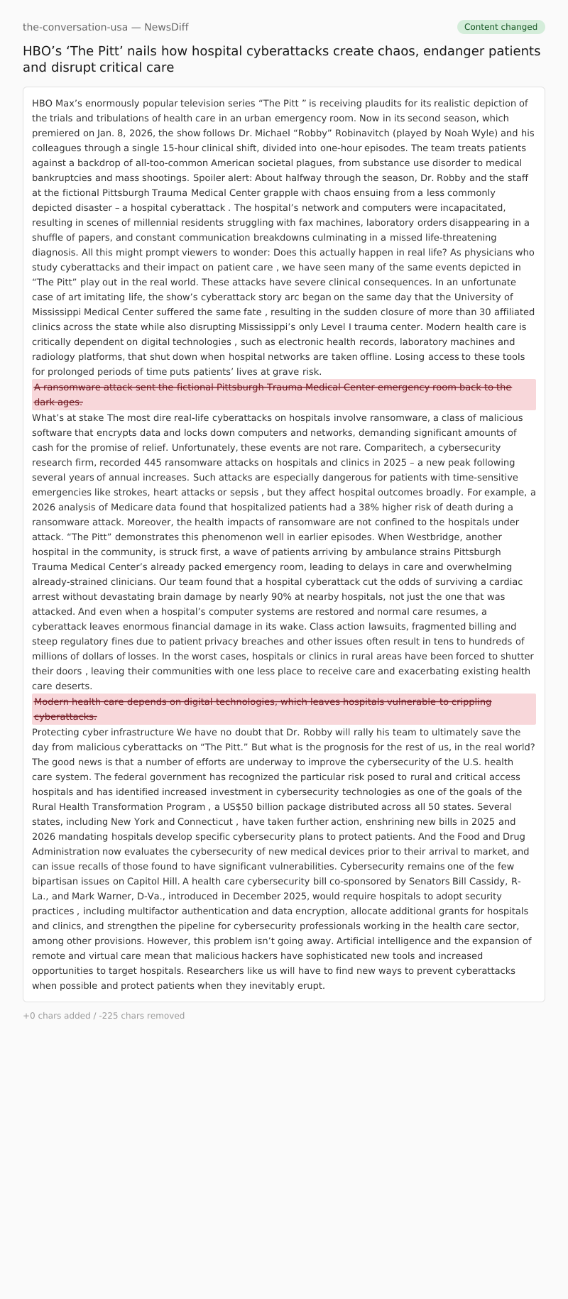 As physicians who study cyberattacks and their impact on patient care , we have seen many of the same events depicted in “The Pitt” play out in the real world.