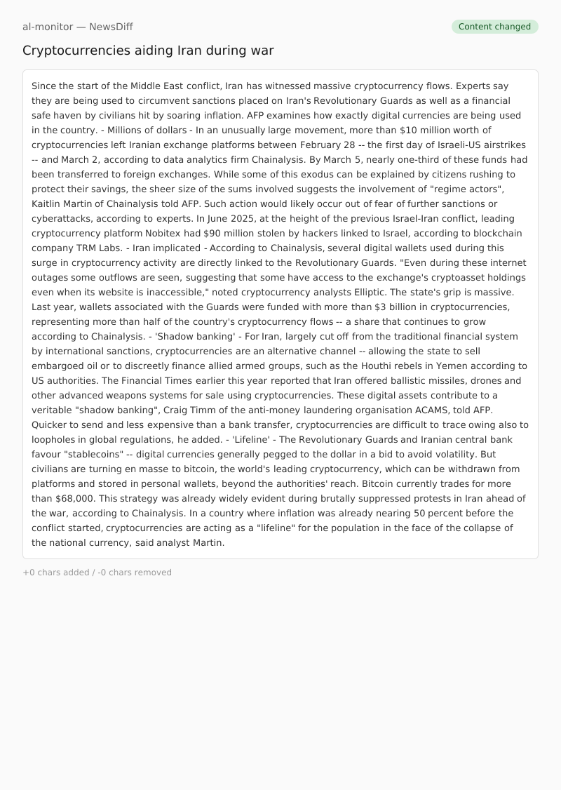 In June 2025, at the height of the previous Israel-Iran conflict, leading cryptocurrency platform Nobitex had $90 million stolen by hackers linked to Israel, according to blockchain company TRM Labs.