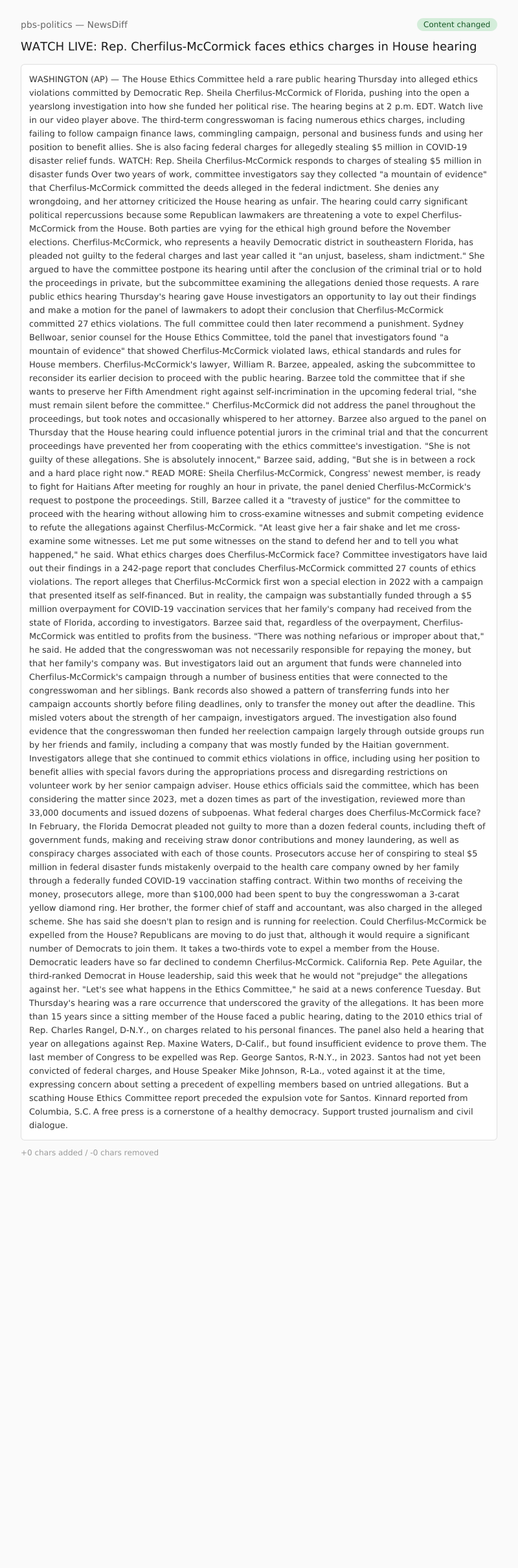 The hearing could carry significant political repercussions because some Republican lawmakers are threatening a vote to expel Cherfilus-McCormick from the House. Both parties are vying for the ethical high ground before the November elections.
