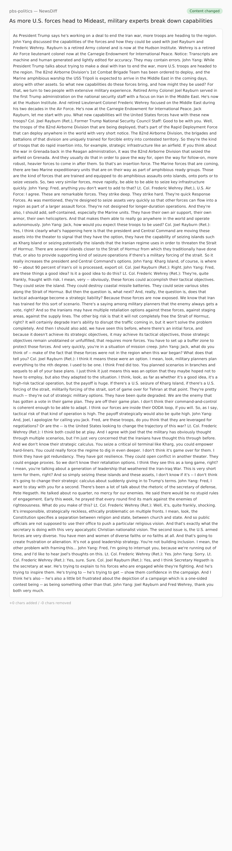 As President Trump says he's working on a deal to end the Iran war, more troops are heading to the region. John Yang discussed the capabilities of the forces and how they could be used with Joel Rayburn and Frederic Wehrey. Rayburn is a retired Army colonel and is now at the Hudson Institute. Wehrey is a retired Air Force lieutenant colonel now at the Carnegie Endowment for International Peace.