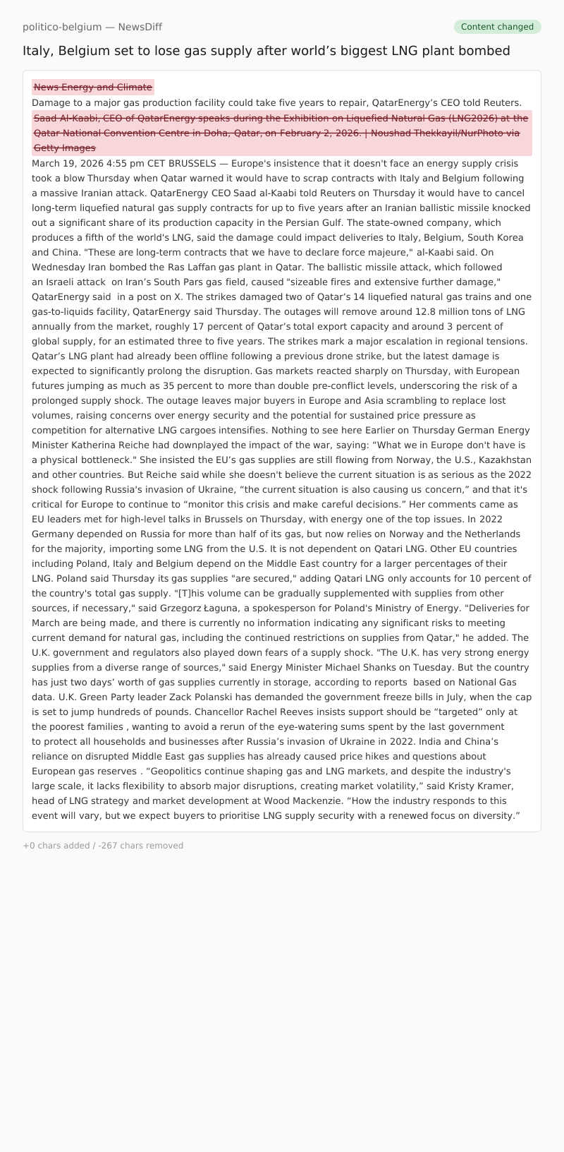 "Deliveries for March are being made, and there is currently no information indicating any significant risks to meeting current demand for natural gas, including the continued restrictions on supplies from Qatar," he added.