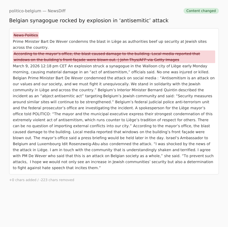 Prime Minister Bart De Wever condemns the blast in Liège as authorities beef up security at Jewish sites across the country.