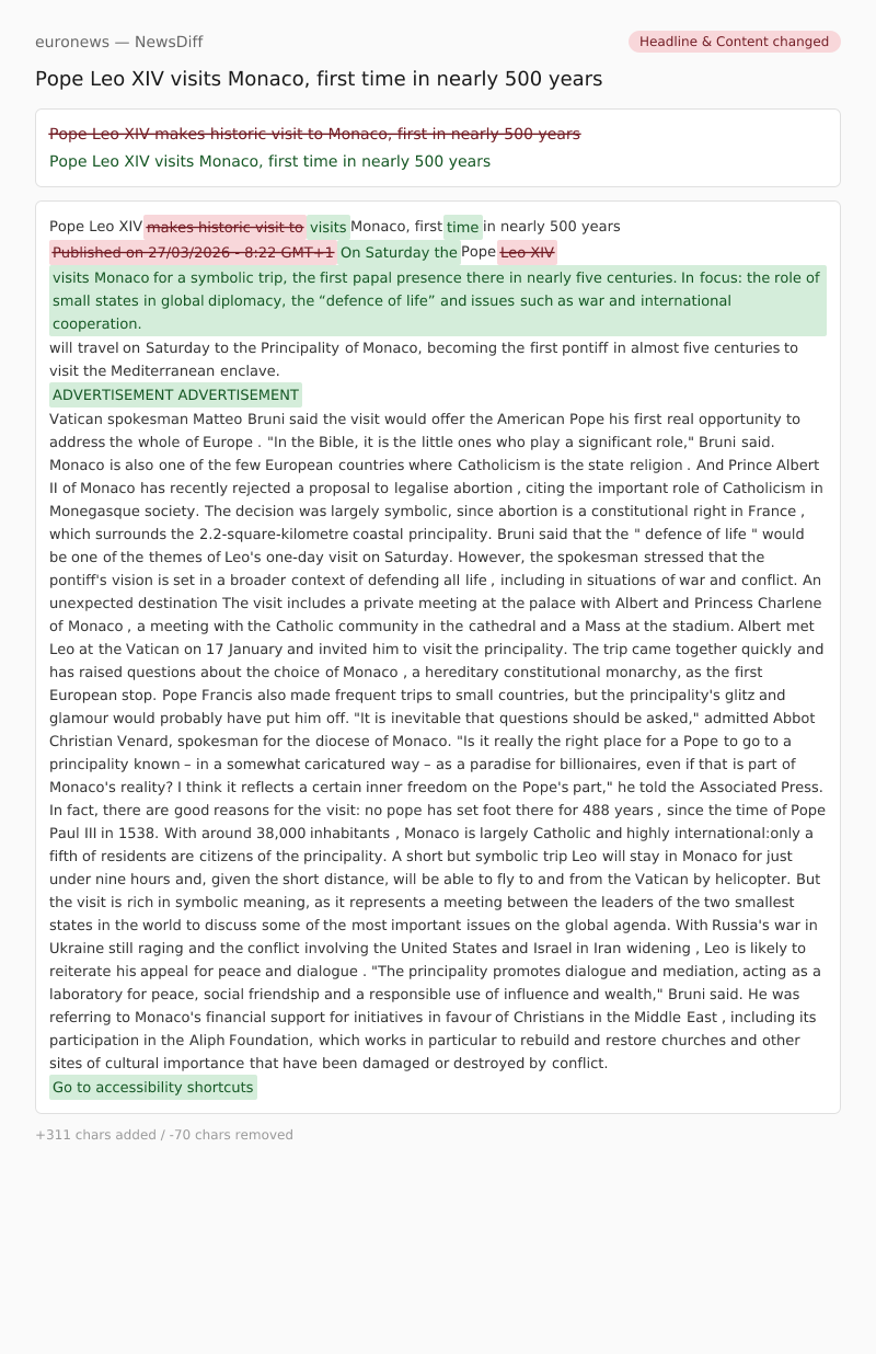 On Saturday the Pope Leo XIV visits Monaco for a symbolic trip, the first papal presence there in nearly five centuries. In focus: the role of small states in global diplomacy, the “defence of life” and issues such as war and international cooperation.