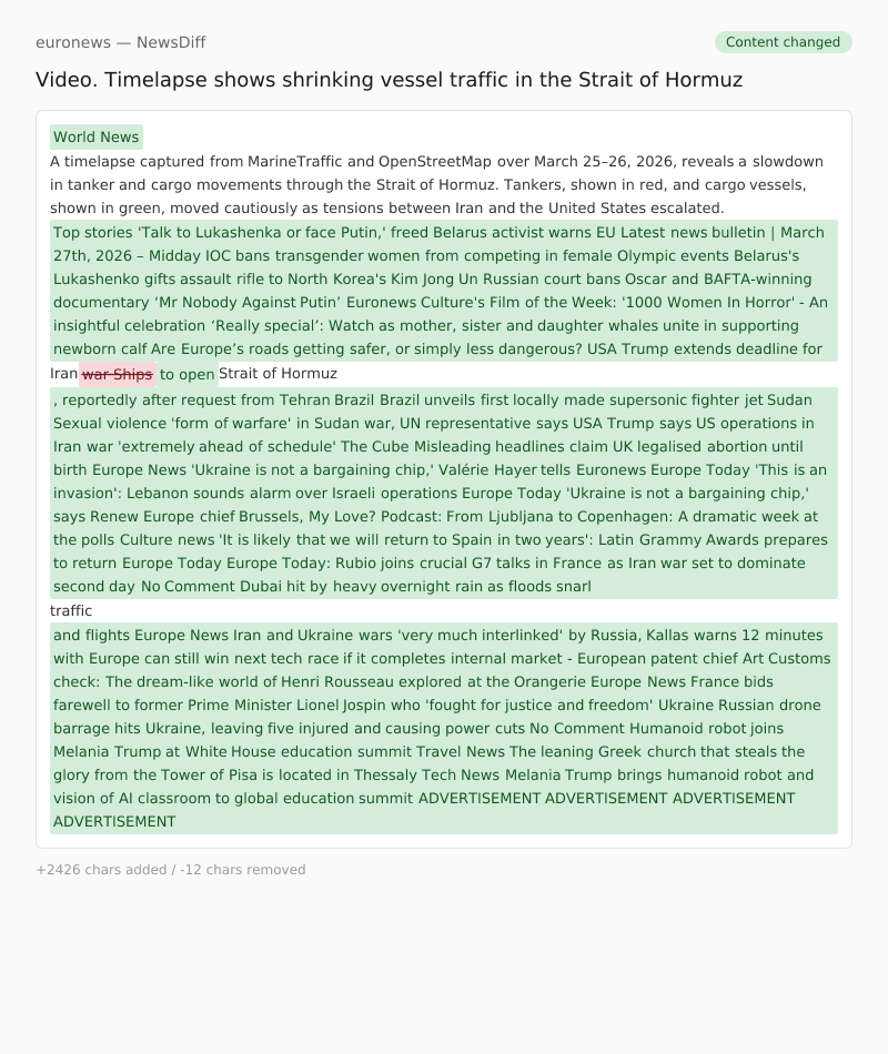 A timelapse captured from MarineTraffic and OpenStreetMap over March 25–26, 2026, reveals a slowdown in tanker and cargo movements through the Strait of Hormuz. Tankers, shown in red, and cargo vessels, shown in green, moved cautiously as tensions between Iran and the United States escalated.