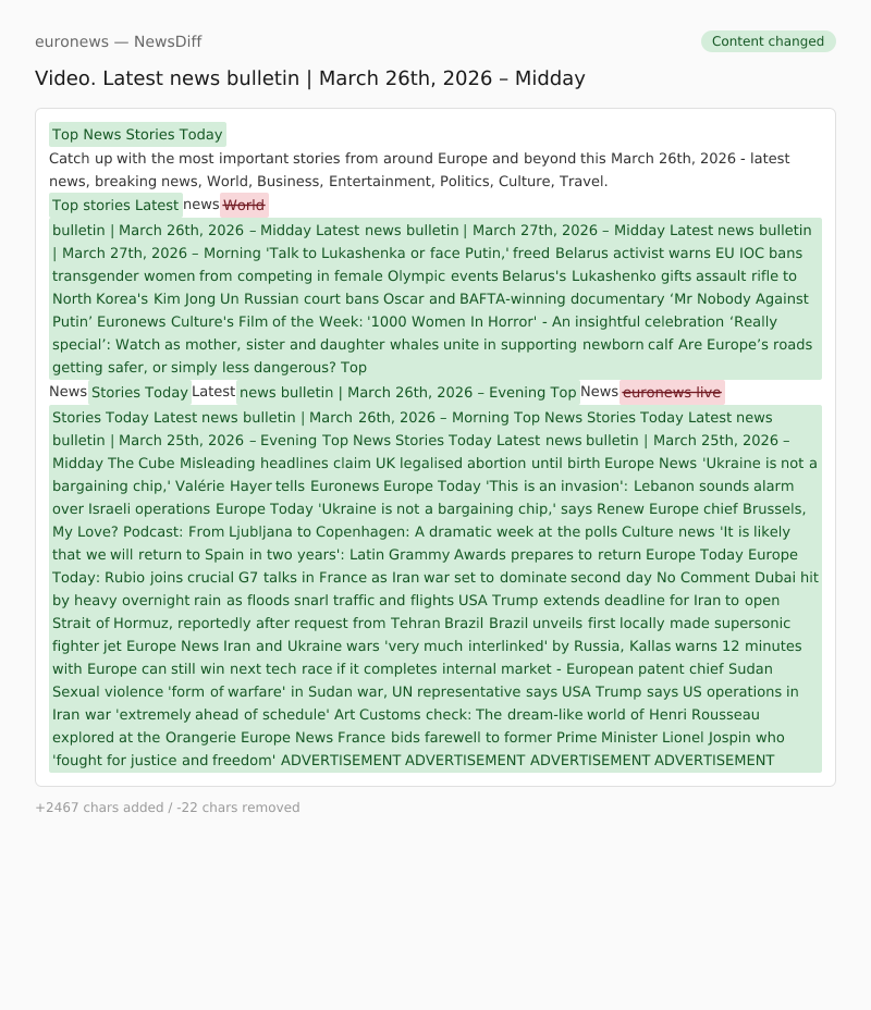 Catch up with the most important stories from around Europe and beyond this March 26th, 2026 - latest news, breaking news, World, Business, Entertainment, Politics, Culture, Travel.