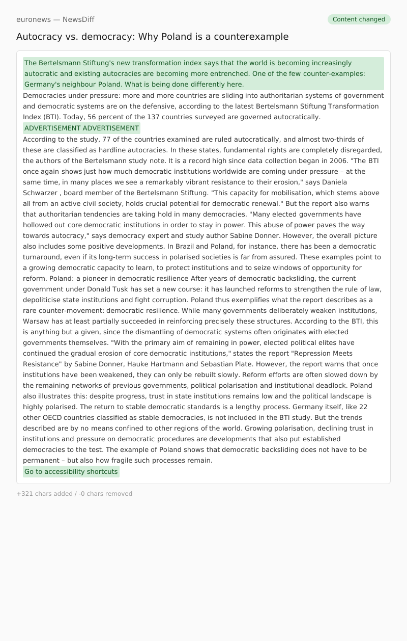 The Bertelsmann Stiftung's new transformation index says that the world is becoming increasingly autocratic and existing autocracies are becoming more entrenched. One of the few counter-examples: Germany's neighbour Poland. What is being done differently here.
