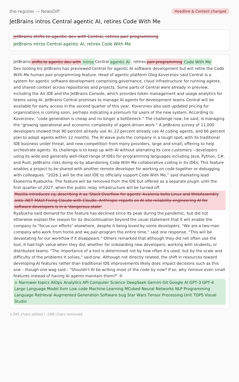JetBrains shifts to agentic dev withintros Central agentic AI, retires pair programmingCode With Me
