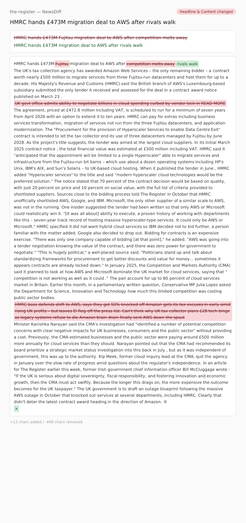 HMRC hands £473M Fujitsu migration deal to AWS after competition melts awayrivals walk