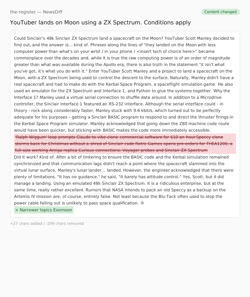 Rumors that NASA intends to pack an old Speccy as a backup on the Artemis IV mission are, of course, entirely false. Not least because the Blu-Tack often used to stop the power cable falling out is unlikely to pass space qualification. ®