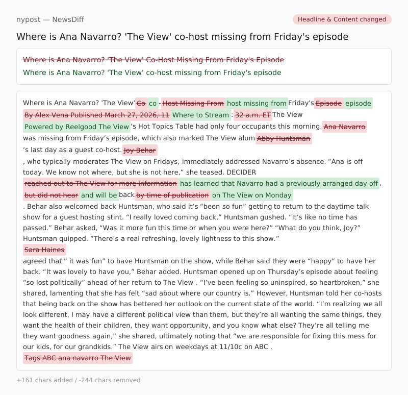 DECIDER reached out to The View for more informationhas learned that Navarro had a previously arranged day off, but did not hearand will be back by time of publicationon The View on Monday.