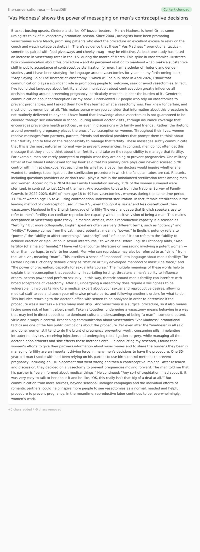 I am a scholar of rhetoric and gender studies , and I have been studying the language around vasectomies for years. In my forthcoming book, “Stop Saying Snip! The Rhetoric of Vasectomy ,” which will be published in April 2026, I show that communication plays a significant role in prompting people to welcome, seek or avoid vasectomies. In fact, I’ve found that language about fertility and communication about contraception greatly influence all decision-making around preventing pregnancy, particularly who should bear the burden of it .