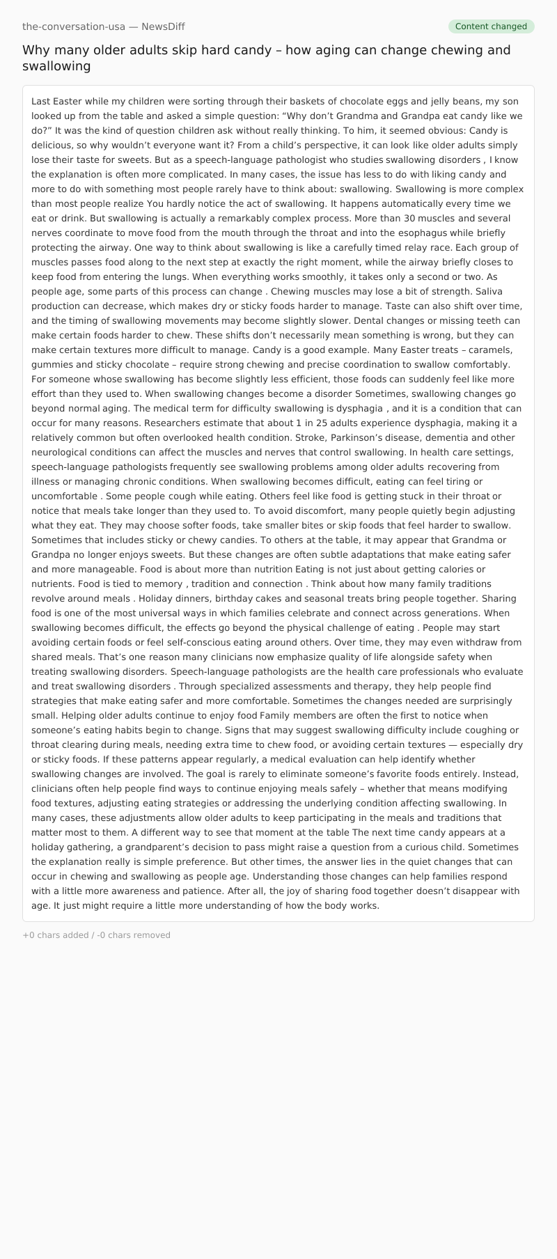 From a child’s perspective, it can look like older adults simply lose their taste for sweets. But as a speech-language pathologist who studies swallowing disorders , I know the explanation is often more complicated. In many cases, the issue has less to do with liking candy and more to do with something most people rarely have to think about: swallowing.