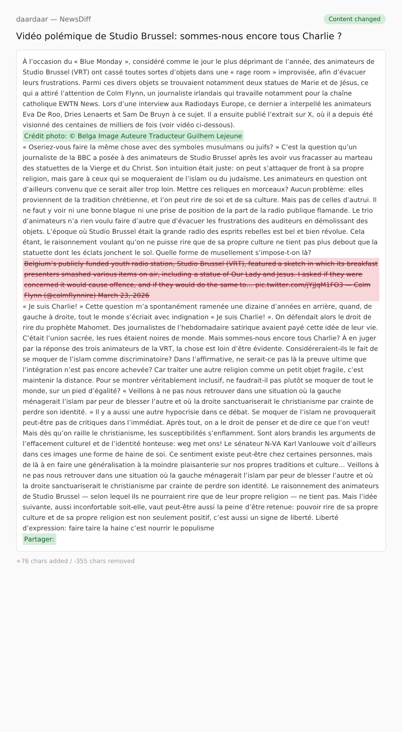 Vidéo polémique de Studio Brussel: sommes-nous encore tous Charlie ?